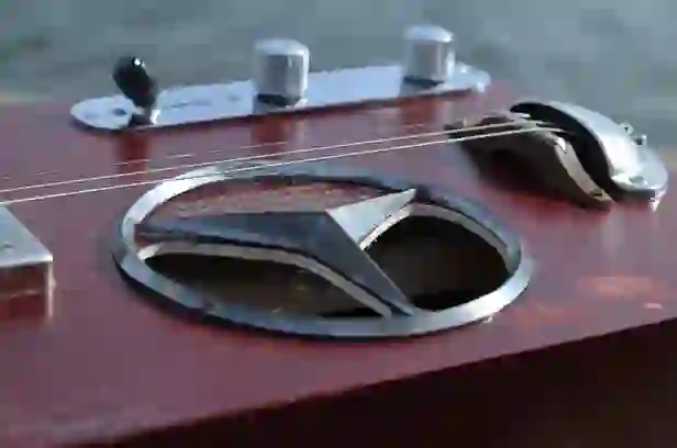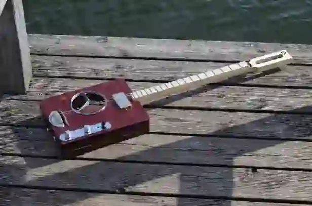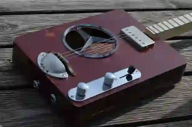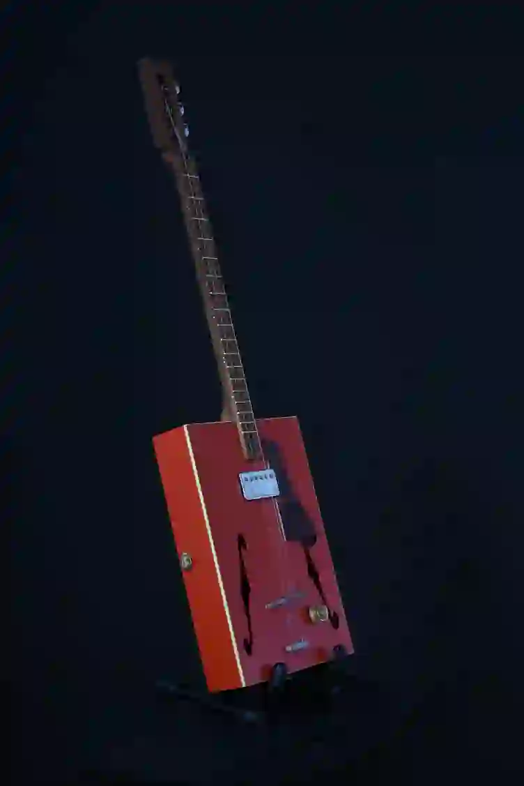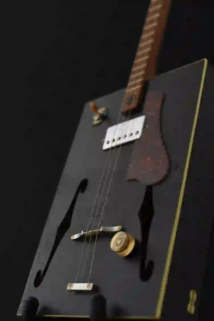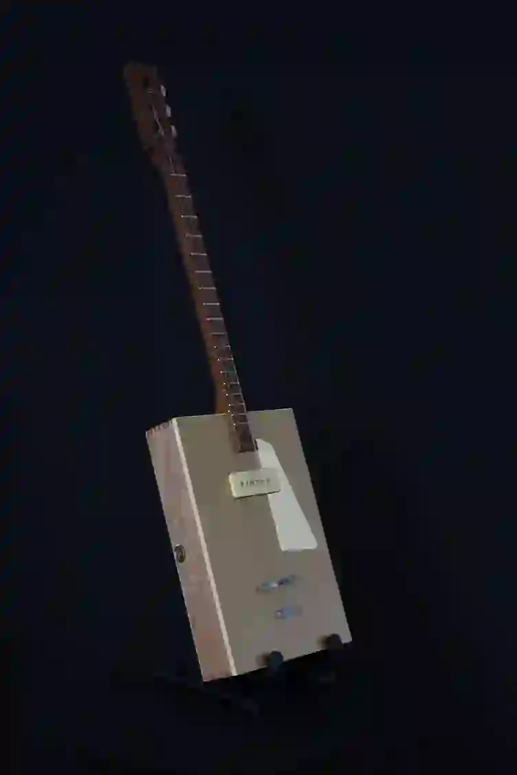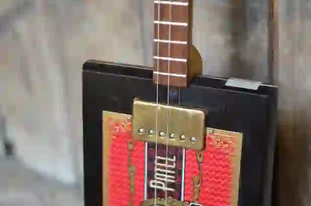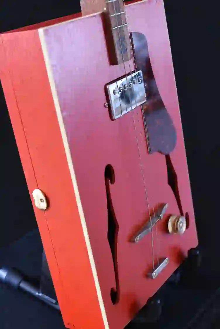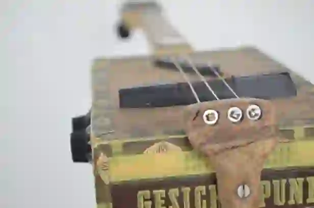 Mensur: 630 mm Halsholz: Mahagoni, Treppenstufe Tonabnehmer: P90 Schaltung: - Widmung: Sean Costello Bestandteil meiner 5er Serie Cigar Box Guitars, die angelehnt an berühmte E-Gitarren und berühmte Gitarristen sind.