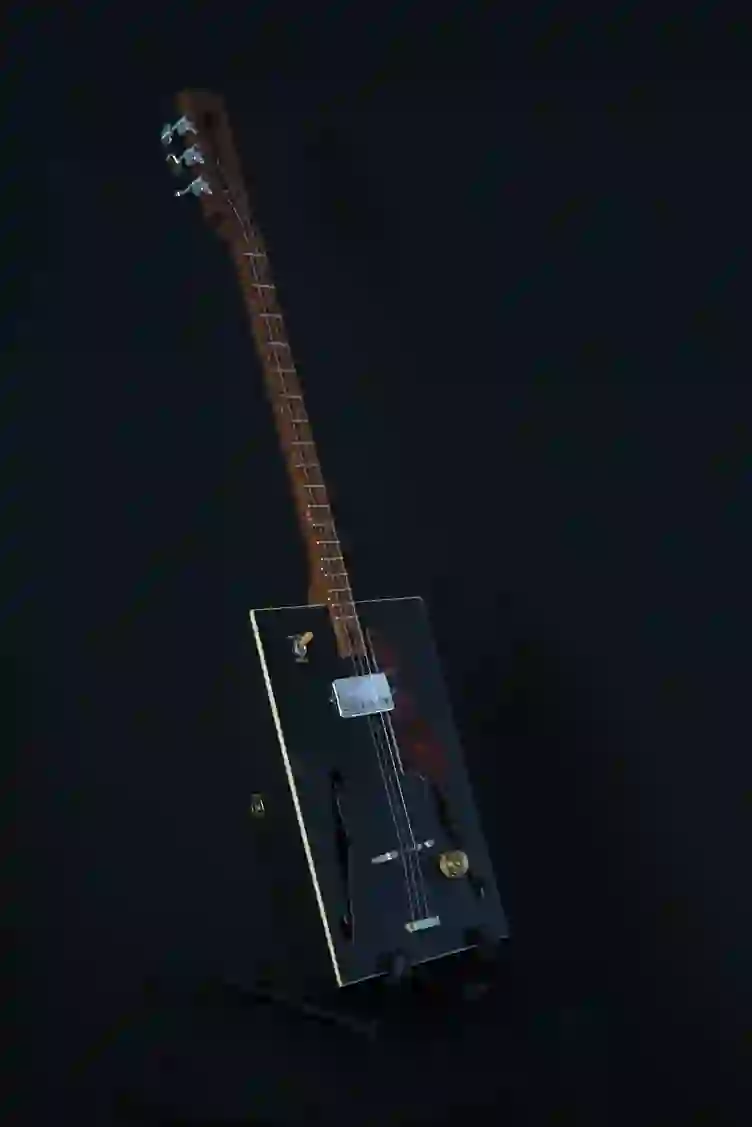 Mensur: 630 mm Halsholz: Ahorn, Tischplatte Tonabnehmer: Singlecoil + Piezo Schaltung: Tone-Poti + Volume-Poti + 3-Way-Switch, 2x Preamp Widmung: Bruce Springsteen Bestandteil meiner 5er Serie Cigar Box Guitars, die angelehnt an berühmte E-Gitarren und berühmte Gitarristen sind.