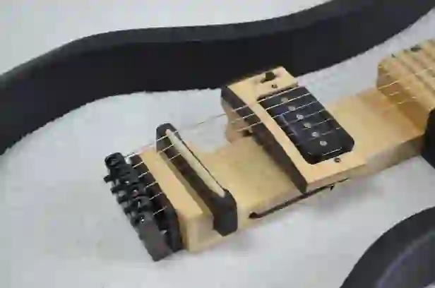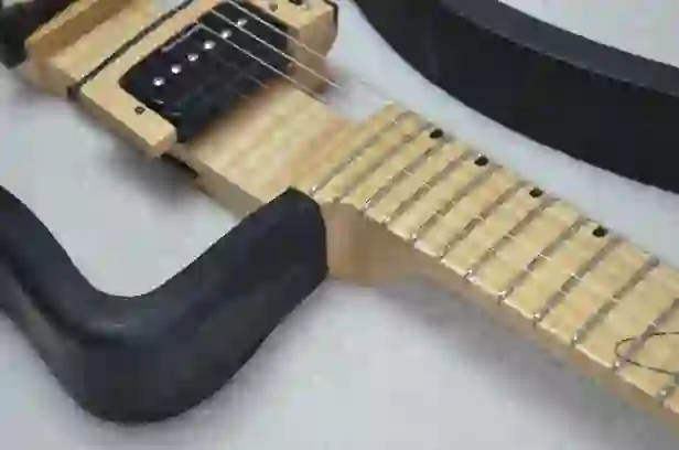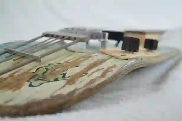 Holz: Ahorn (Hals), Palisander (Griffbrett), Ahorn laminiert (Skateboard als Korpus) Tonabnehmer: Lanz Pickups, Made in Germany Elektronik: Volume + C-Switch