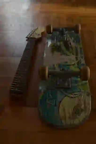 Eine Gitarre aus einem Skateboard zu bauen hat mich schon länger fasziniert und im Winterurlaub konnte ich das relativ kurzfristig ausprobieren. Dabei entstand eine extrem leichte und außergewöhnliche Gitarre, mit der man sehr viel Spaß haben kann. Ich werde noch weitere Skateguitars bauen...