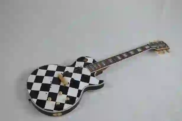 Ein typischer Dachbodenfund... Eine schöne Les Paul Custom Kopie aus Japan von der Firma "Kasuga", einige Jahrzehnte alt aber in traurigem Zustand. Nach Neubundierung, Austausch aller Komponenten und Neulackierung in modernem Design ist sie wieder super bespielbar und klingt richtig fett.