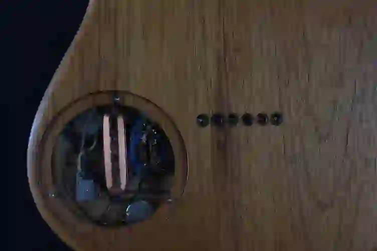 Holz: kanadischer Riegelahorn (Hals & Korpusbinding), Mahagoni (Korpus und Skunkstripe) Tonabnehmer: Rockinger Dream Set Schaltung: 5-Wege-Schalter (Hals-HB | Hals-SC | Hals-SC + Brücken-SC | Brücken-SC | Brücken-HB) + Master-Tone + Master-Volume