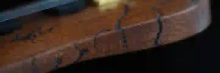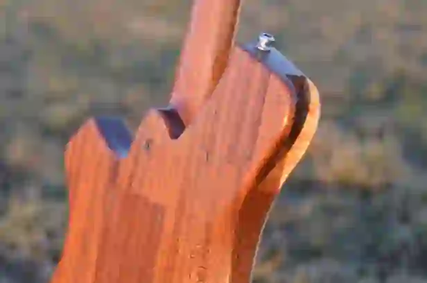 Holz: Riegelahorn (Hals), Cocobolo (Inlays), Ahorn (Rahmen) Tonabnehmer: Seymour Duncan P-Rail + Piezo Klemmsattel: Messing (Eigenbau) Stimmmechaniken: Stahl, brüniert (Eigenbau) Mensur: 650mm