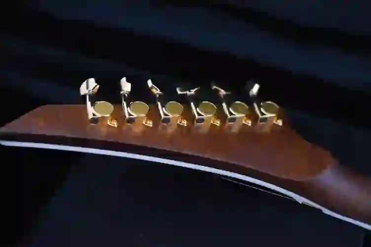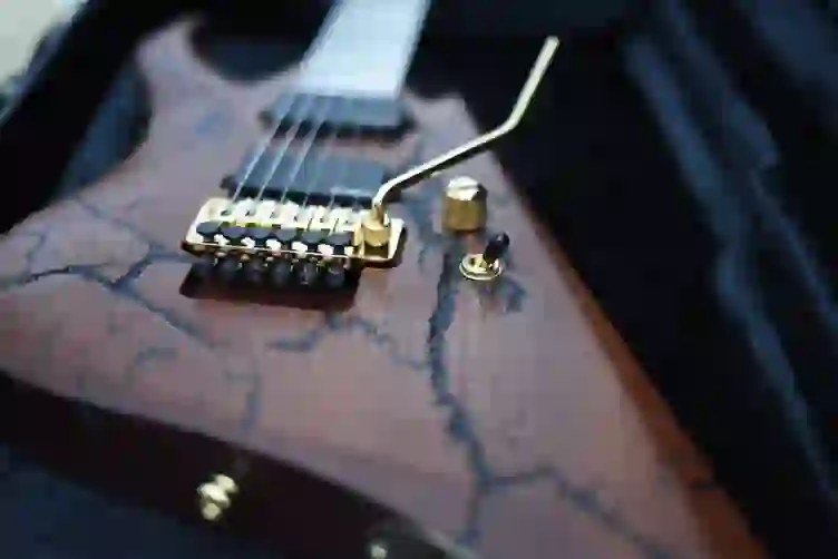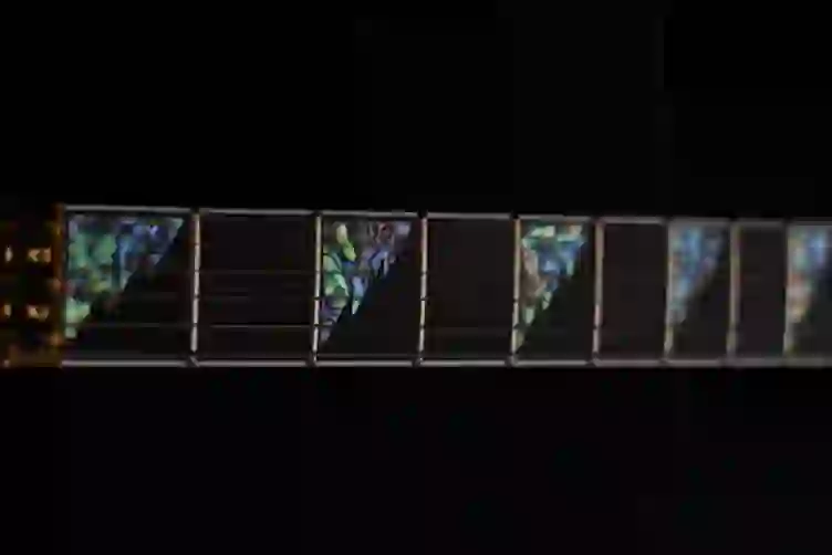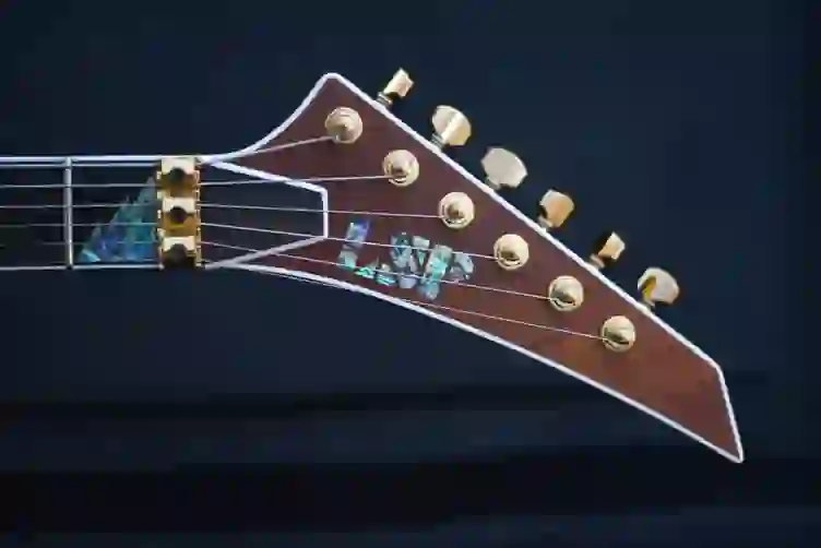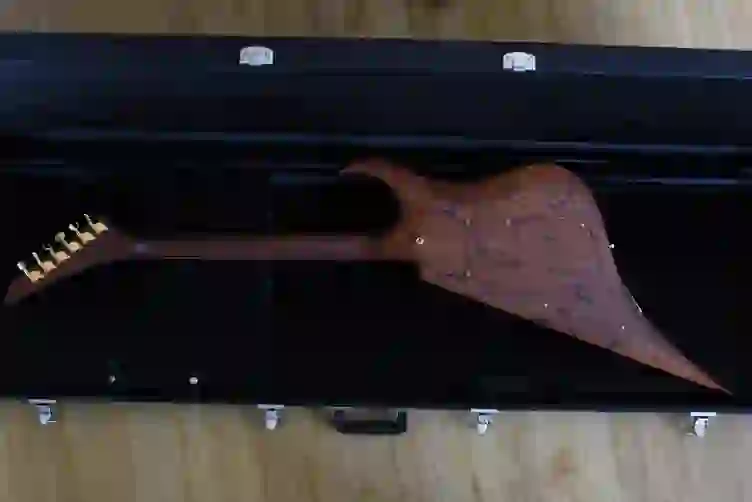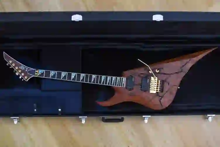 Korpus: Treppenstufen-Mahagoni mit Lichtenberg-Figuren Griffbrett: Mooreiche aus Frankreich mit Abalone-Inlays Tonabnehmer: EMG HZ Hardware: Original Floyd Rose + Gotoh Mechaniken